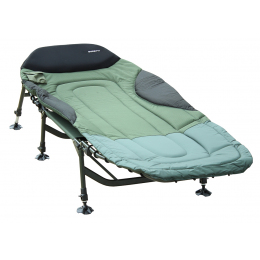 Exkluzívne lehátko s tromi pármi nôh. Široké polstrovanie chráni pred vetrom a zimou. Matrac je ušitá z veľmi pevného materiálu 600D Oxford-Nylonu s pridanou protišmykovou osnovou. Vankúš a boky sú z neoprénu a vankúš je navyše možné vybrať a v prípade potreby vysušiť. Nosnosť lehátka je dimenzovaná s rezervou do 135kg. Kompaktná konštrukcia, vystužené kĺby operadla a husté vinutie nosnej gumy to len potvrdzujú. Teleskopické nohy majú pružinový, ľahko ovládateľný zámok a protišmykovú podložku otočnou o 360 °. V základnej výbave je aj vrecko našitá na matrac na mobilný telefón alebo odposluch.