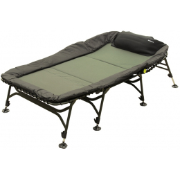 Rybárske lehátko široké 120cm. Exkluzívne lehátko so štyrmi pármi nôh. Široké polstrovanie chráni pred vetrom a zimou. Matrac je ušitá z veľmi pevného materiálu 600D Oxford-Nylonu. Vankúš je navyše možné vybrať a v prípade potreby vysušiť. Nosnosť lehátka je vďaka oceľovej konštrukcii a štyrom párom nôh, dimenzovaná s rezervou do 220kg. Kompaktná konštrukcia, vystužené kĺby operadla a husté vinutie nosnej gumy to len potvrdzujú. Teleskopické nohy majú nový, ľahko ovládateľný zámok, protišmykovú podložku a novú aretáciu proti sklopeniu.