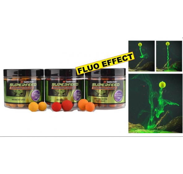 Najmodernejšie riešenie prezentácie nástrahy. Okamžitý Diffusion - Double efekt, uvoľňuje sa intenzívne fluorescenčná farba is arómu, ktorá vábi rybu z veľkej diaľky. Ryby vidia mrak akoby zvírenie vody a cíti silnú arómu.