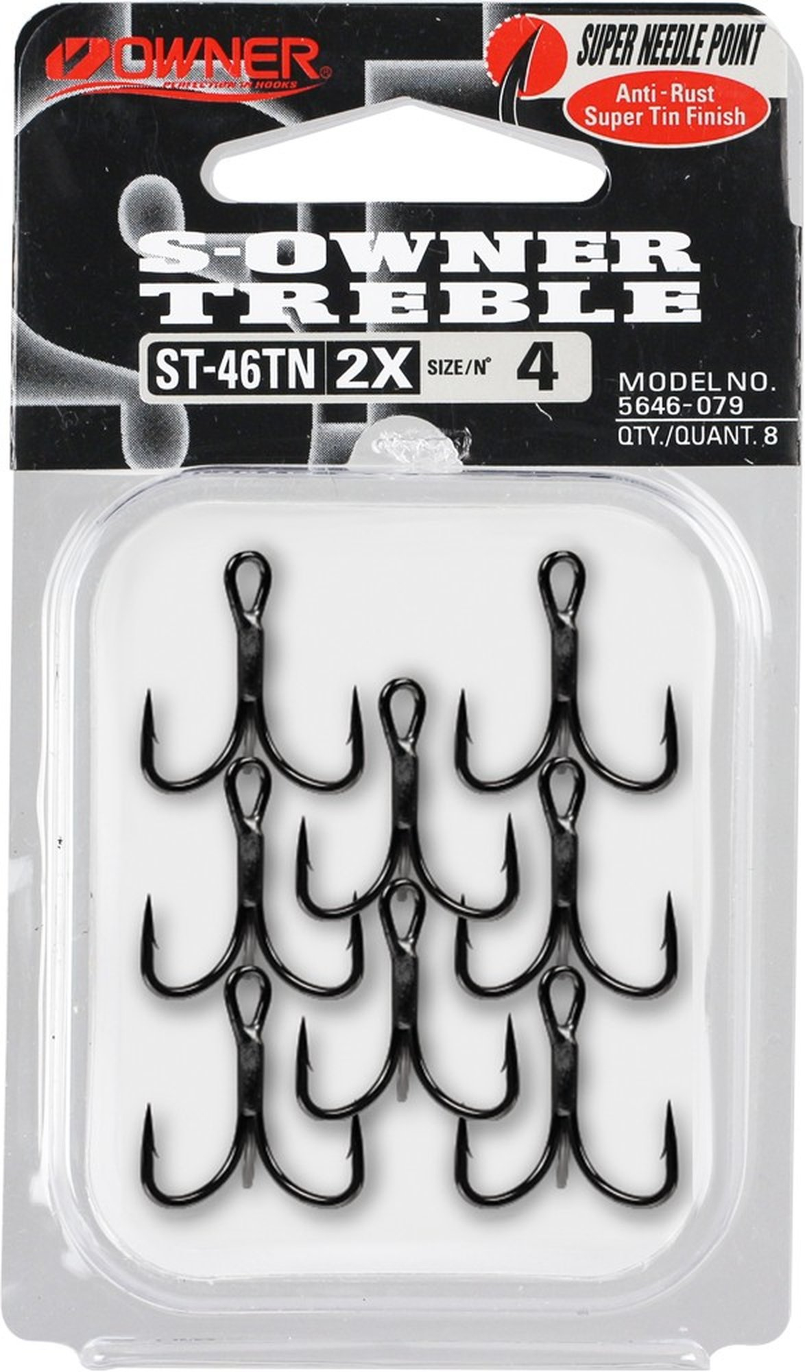 Owner ST-46 Stinger Treble - Black Chrome~Prémiové trojháčky typu Stinger Treble s unikátní čtyřdílnou konstrukcí - každé ramínko je samostatně spájeno pro maximální přesnost a rovnováhu. Očko je přivařeno přímo na vrchní části, což zajišťuje rychlejší a efektivnější zásek. Jsou vyrobeny z japonské oceli s antikorozní úpravou a extrémně ostrým hrotem typu Super Needle Point. Ideální pro přívlač, velké nástrahy i těžké podmínky. Skvělá volba pro intenzivní rybolov - odolné, přesné a ostré i po opakovaném použití.~Vlastnosti:~~· Materiál: japonská ocel~~· Trojháček ze 4 dílů - precizní vyvážení~~· Kovaný pro extra pevnost~~· Super Needle Point - chemicky ostřený hrot~~· Antikorozní úprava~~· Barva: Black Chrome