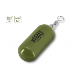 Ekologické zátěže jsou vzhledem k ochraně životního prostředí ve světě rybolovu vyhledávány stále více. Právě proto jsme uvedli do nabídky model zátěže, která je provedena z oceli a umožní vám lov i na revírech či rybářských závodech, kde je zákaz používání olova. Válcovitý tvar zátěže Delphin EcoCAST ji předurčuje zejména k lovu nahazováním na stojatých vodních plochách. Pro pohodlné upevňování do závěsného klipu je zátěž vybavena obratlíkem s větším očkem. Velkou výhodou oceli oproti olovu je i její magnetičnost, což oceníte v případě odpadnutí zátěže, kdy ji můžete pomocí magnetu opětovně vytáhnout z vody. Zelené barevné provedení dokonale kamufluje zátěž na dně, díky čemuž nevyvolává zvýšenou pozornost u opatrných ryb. Široká škála hmotností navíc umožní přizpůsobit gramáž aktuálním podmínkám na vašem lovném místě.